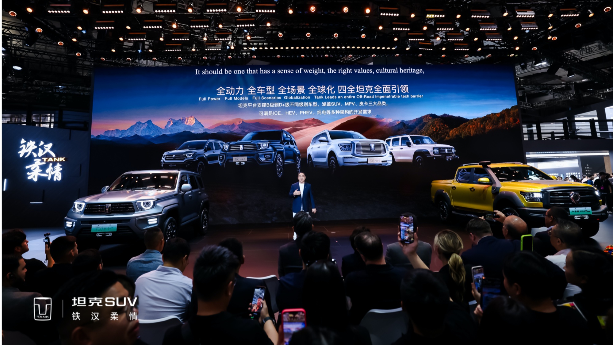 本届上海车展,坦克全面展示了其在全动力、全车型、全场景的系统化升级。4.0TV8发动机实现核心动力突破,填补了中国品牌在大排量动力领域的空白。坦克300虎克版强化了极限越野能力,2025坦克300柴油版则以更高效的使用价值拓展了一种新的新能源解决方案。