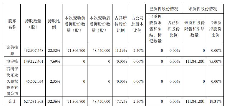 完美世界于2025年8月16日发布了关于控股股东股份质押及解除质押的公告。近期,公司接收到控股股东完美世界控股集团有限公司(简称“完美控股”)的通知,获悉其持有的部分公司股份已经进行了质押以及完成了解质押工作。截止至该公告披露之日,完美控股所持有完美世界的股票总共有4.329亿股,占公司22.32%的股权比例。目前,完美控股持有的这部分股份中,有4845万股处于质押状态,这约占其合计持股数量的11.19%,同时这也是对应于公司股本总量的2.50%的比例。