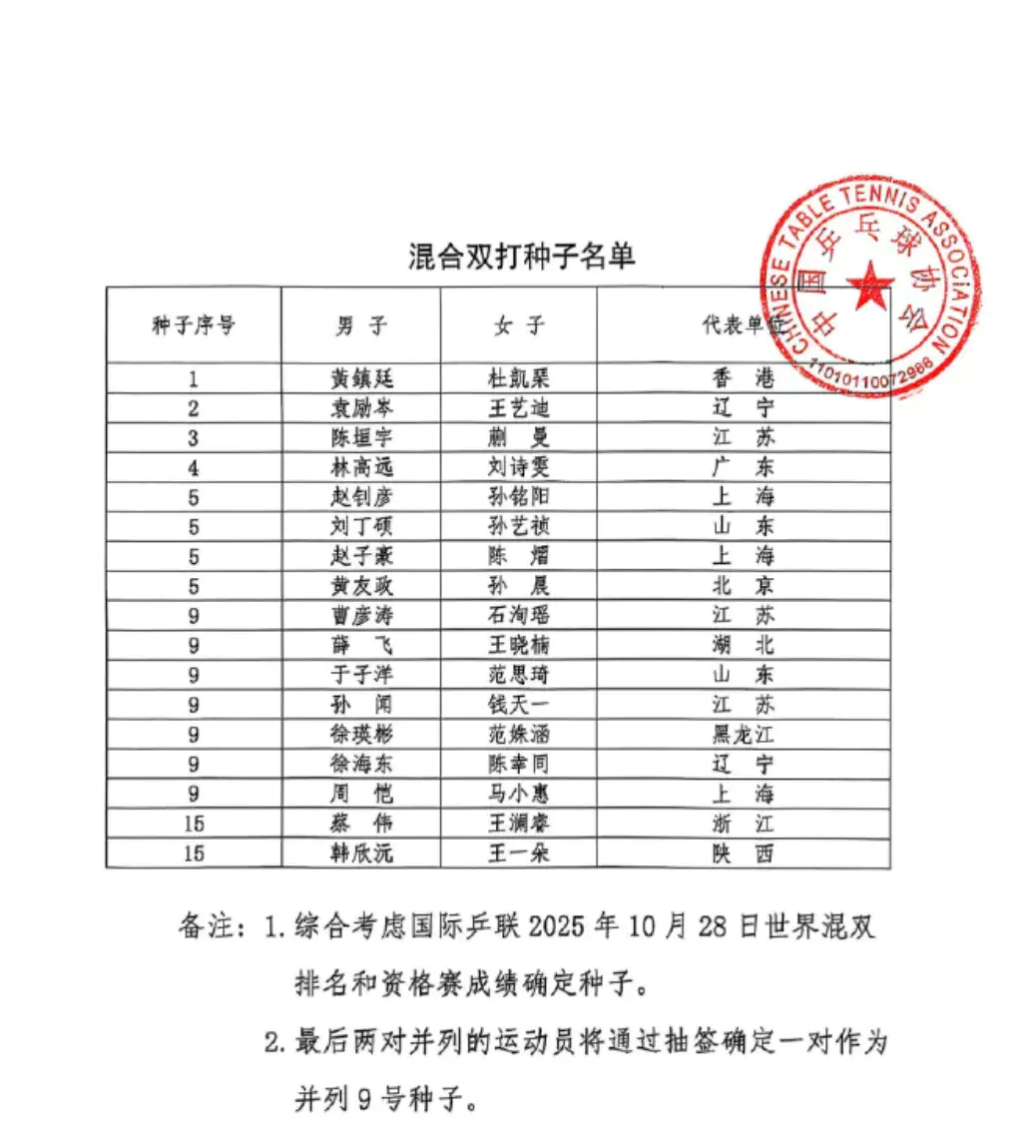 中国乒协公布全运会种子名单,王楚钦、孙颖莎分别为男单女单1号种子选手_【增值税普通发票几个点【代办电话13434104765;QQ2188982664】】