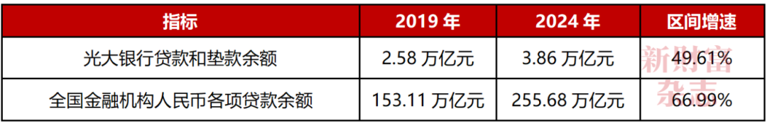 2019-2024年间,光大银行信贷增长速度较国内平均水平低了约17个百分点