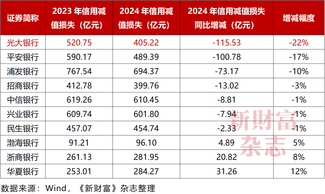 表9显示,2024年末,光大银行计提的信用减值损失同比下降了22.05%,远超市场预期。